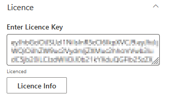 Um zusätzliche Funktionen freizuschalten, können Sie einen Lizenzschlüssel erwerben. Der Lizenzschlüssel wird vom Website-Betreiber direkt im Eigenschaftenbereich der App auf allen Seiten hinzugefügt, die das Webpart hosten.
