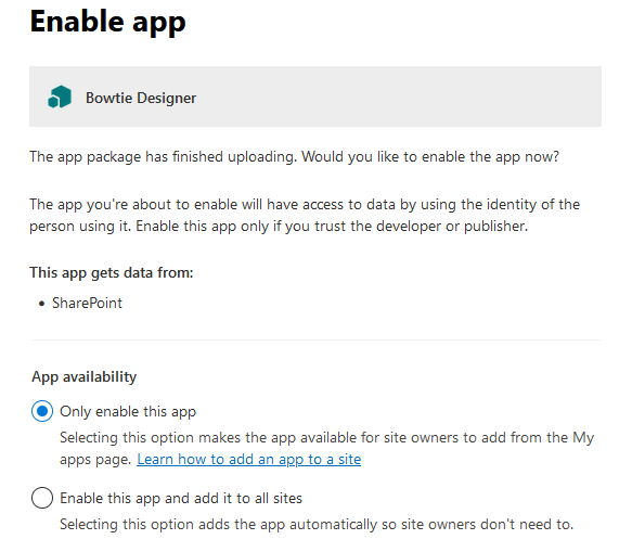 Bowtie Designer ist derzeit nur für die Verwendung mit SharePoint® Online konzipiert. So installieren Sie es: